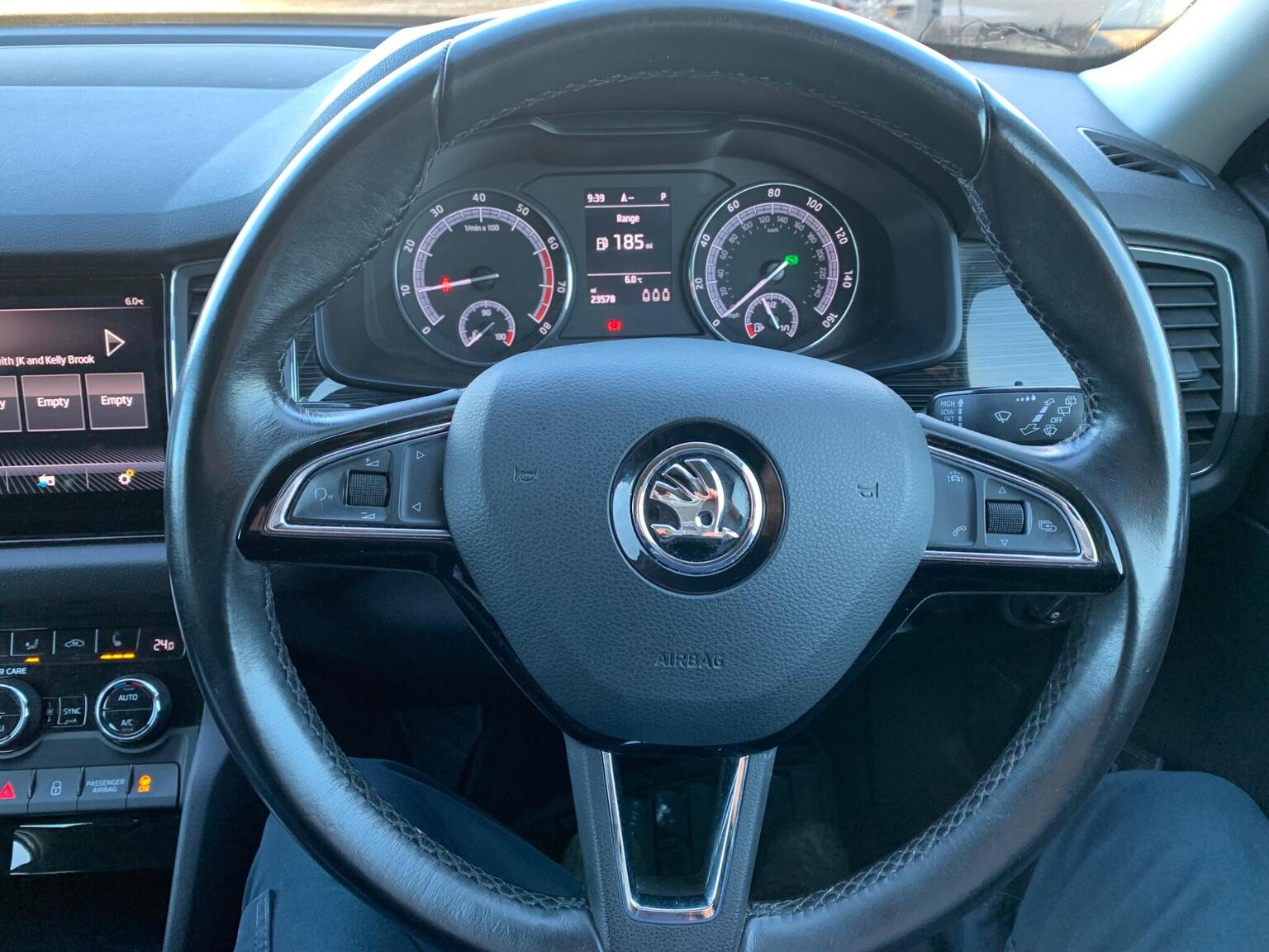 This 2017 Skoda Kodiaq TSI SE L presents an exceptional opportunity with its remarkably low mileage of just 35,000 miles. This Euro 6 compliant 1.4 litre petrol model, finished in the SE L trim, offers a compelling blend of practicality and technology. It comes equipped with full LED headlights featuring Adaptive Frontlight System and LED daytime running lights, ensuring excellent visibility. Convenience is enhanced by the KESSY keyless entry and start system, alongside rear parking sensors to aid manoeuvring. For your connectivity needs, Bluetooth is integrated, and the light and rain sensors automatically manage the headlights and wipers, making every journey smoother.